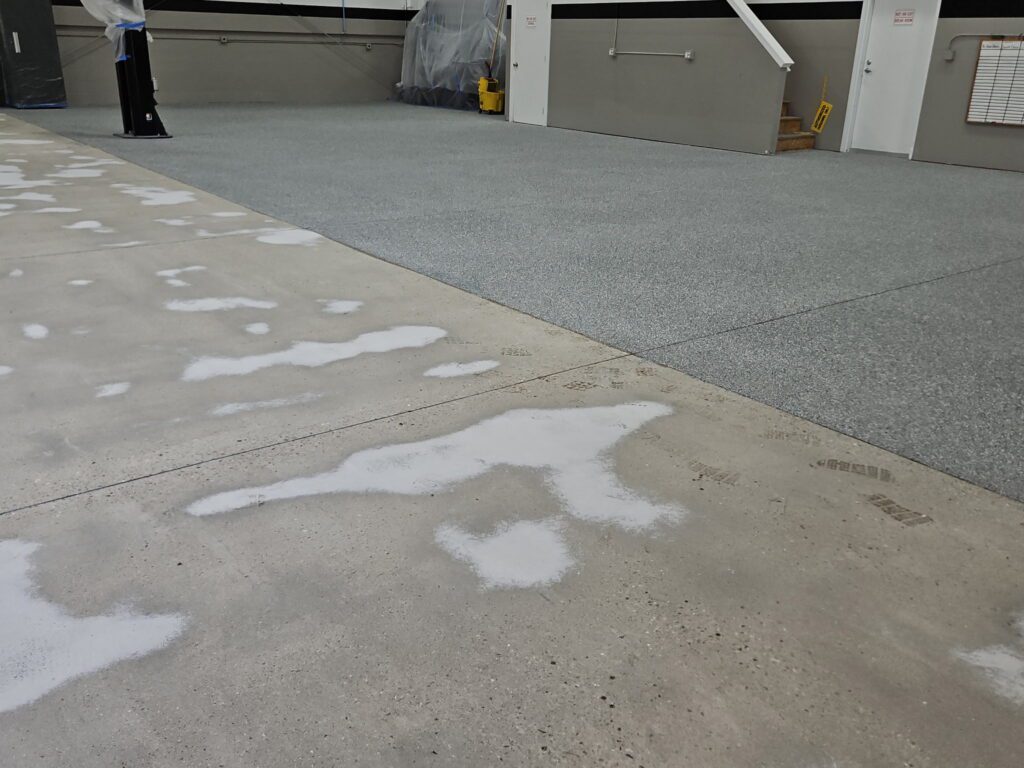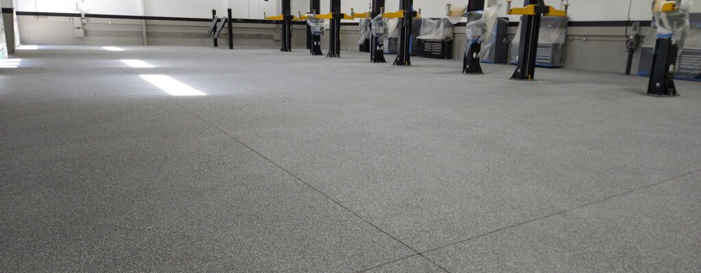 Shop floor went from beat-up concrete to a clean, durable flake finish. Strong enough for forklifts, tools, whatever you throw at it.